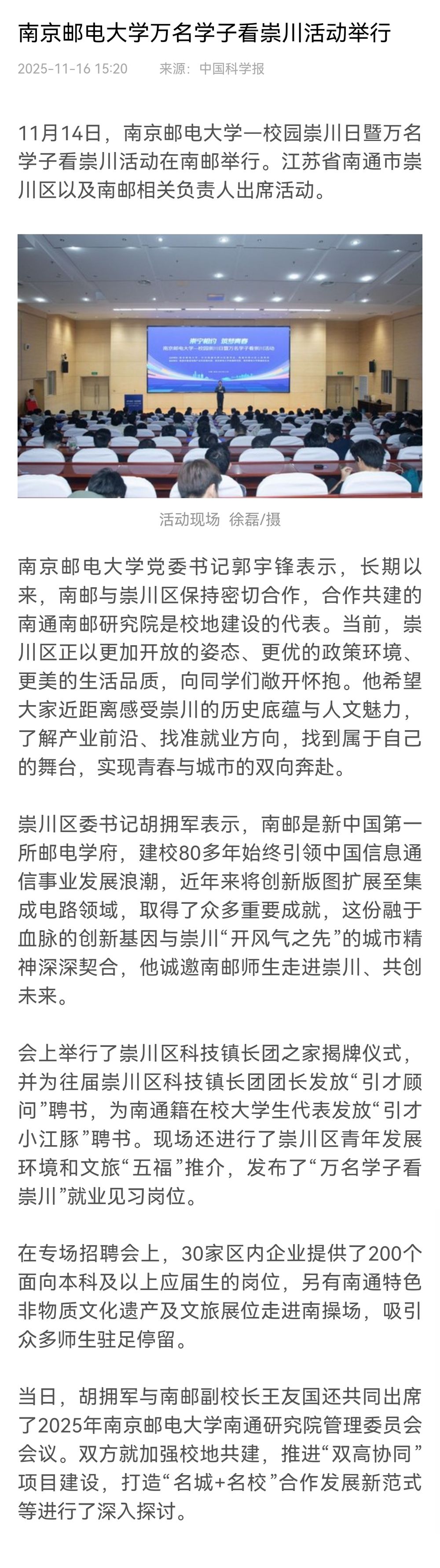 【科学网】南京邮电大学万名学子看崇川活动举行
