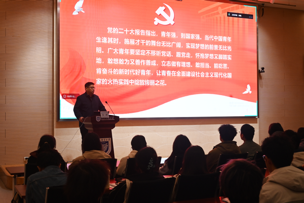 为进一步深化大学生骨干的思想政治引领,筑牢理想信念根基,近日,我院于中兴报告厅举行了第204期菁英人才学校第七次理论授课。本次授课由院党委书记高翔主讲,主题为“永远跟党走奋进新征程”,课程采用线上线下相结合的方式进行。