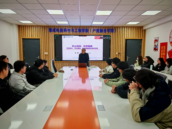 11月20日下午18:30,李雷教授应邀为集成电路科学与工程学院(产教融合学院)第6期入党积极分子讲授《红心向党,科学报国——不忘初心、牢记使命、科学报国的红色科学家》课程。66名学员参加培训。