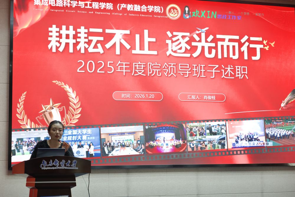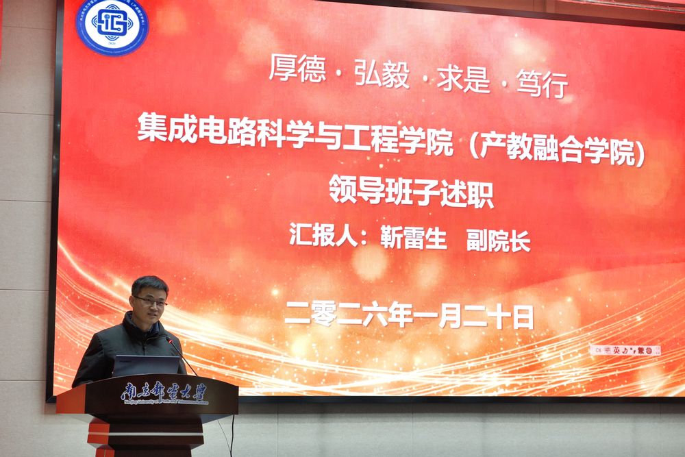 1月20日下午13:30,集成电路科学与工程学院(产教融合学院)在仙林校区行政楼中天科技报告厅隆重召开2026年全院教职工大会。会议由院党委书记高翔主持。